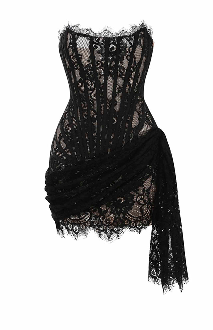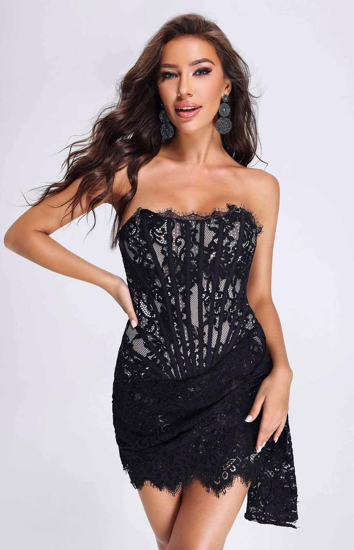 Marvelous Corset style Floral Lace Mini Dress to Impress - must have! Stretch at the bust, waist and hips allows our garments to fit your body shape gracefully.